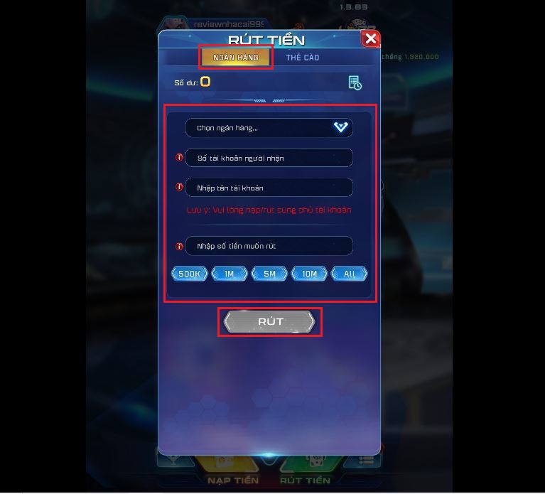 Bước 3: Điền xong những thông tin phiếu rút, nhấn chọn vào nút Rút để gửi phiếu rút về cho nhân viên Win79 kiểm duyệt và chuyển tiền về tài khoản ngân hàng của bạn.