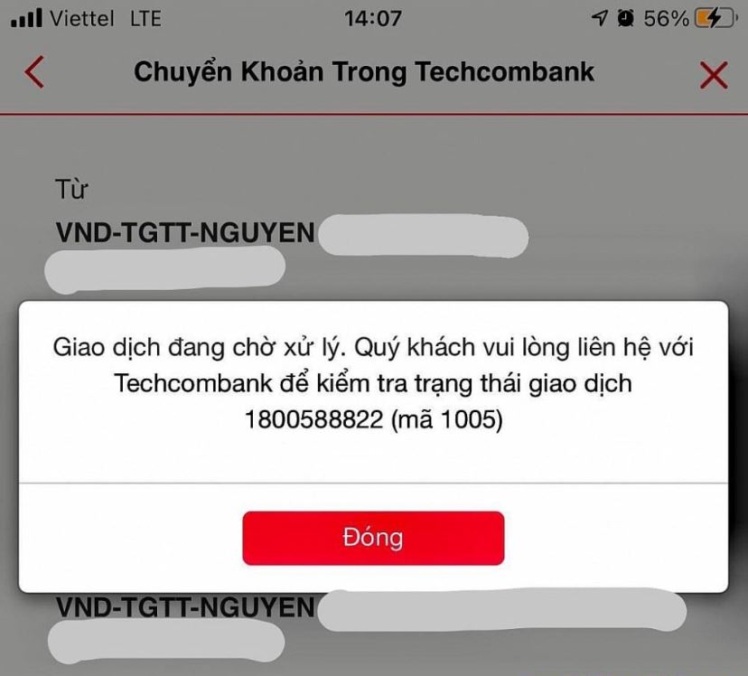 Lỗi chậm tiền nạp do Techcombank bảo trì