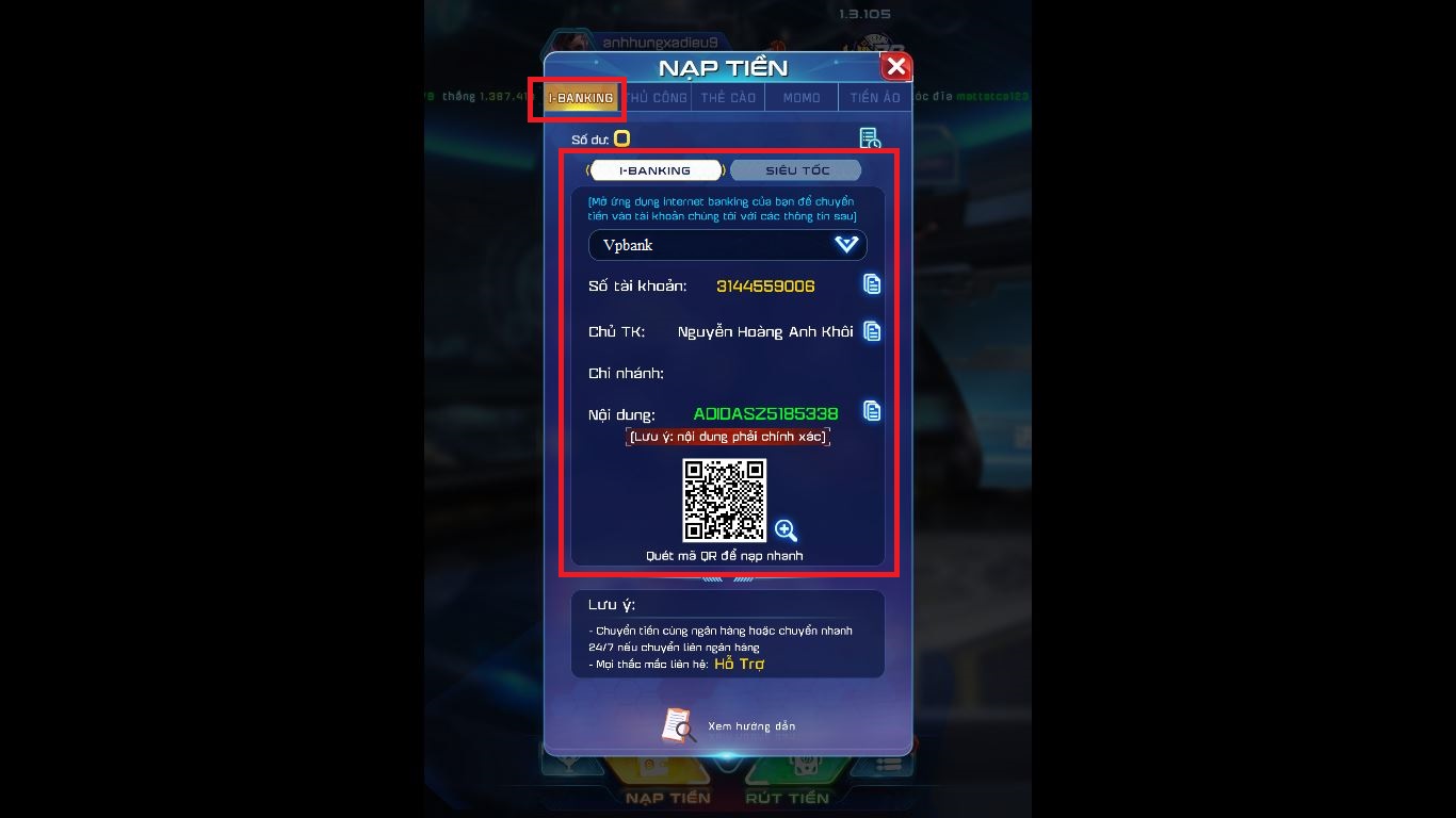Kiểm tra thật chính xác toàn bộ thông tin chuyển khoản cũng như thông tin điền vào phiếu nạp để tránh sai sót, tiền nạp được cộng vào tài khoản nhanh chóng.