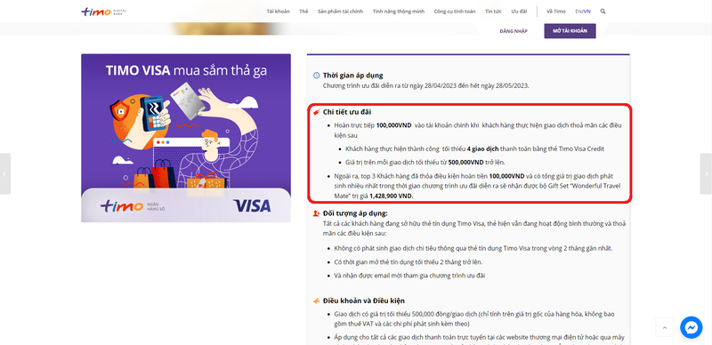 - Chương trình áp dụng cho thành viên đang sử dụng app Timo và nhận được email mời dùng ưu đãi.