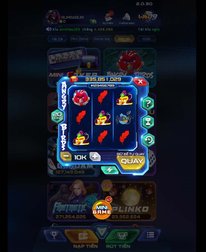 Những chú chim giận dữ là một trò chơi dễ chơi dễ trúng thưởng tại Win79. Người chơi chỉ cần nhấn quay và thu nhập những chú chim giống nhau theo cùng 1 chiều. Như vậy là đã có thể chiến thắng và đem tiền về tài khoản của mình.