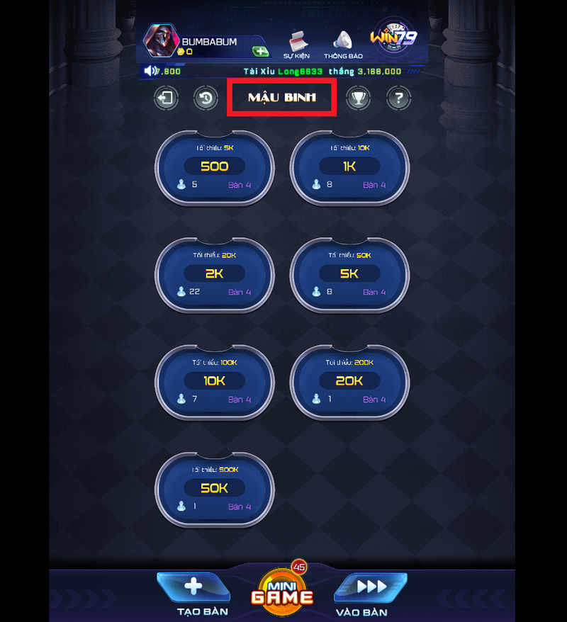 Và việc chọn những phòng đôi khi chơi Mậu binh sẽ giúp anh em thua ít tiền hơn. Vì thông thường bàn chơi càng nhiều người thì giá trị cược càng cao. Nếu như anh em chỉ là những tay mơ mới tập tành chơi Mậu binh thì cân nhắc chọn phòng chơi ít người nhé.