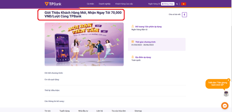 Nhận ngay 70.000 ngay khi giới thiệu khách hàng mới đến TPbank