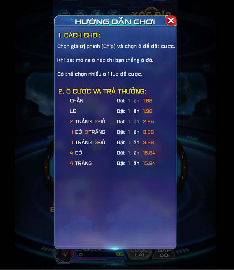 - Ô cược Chẵn: đặt cược 1 ăn 1.98