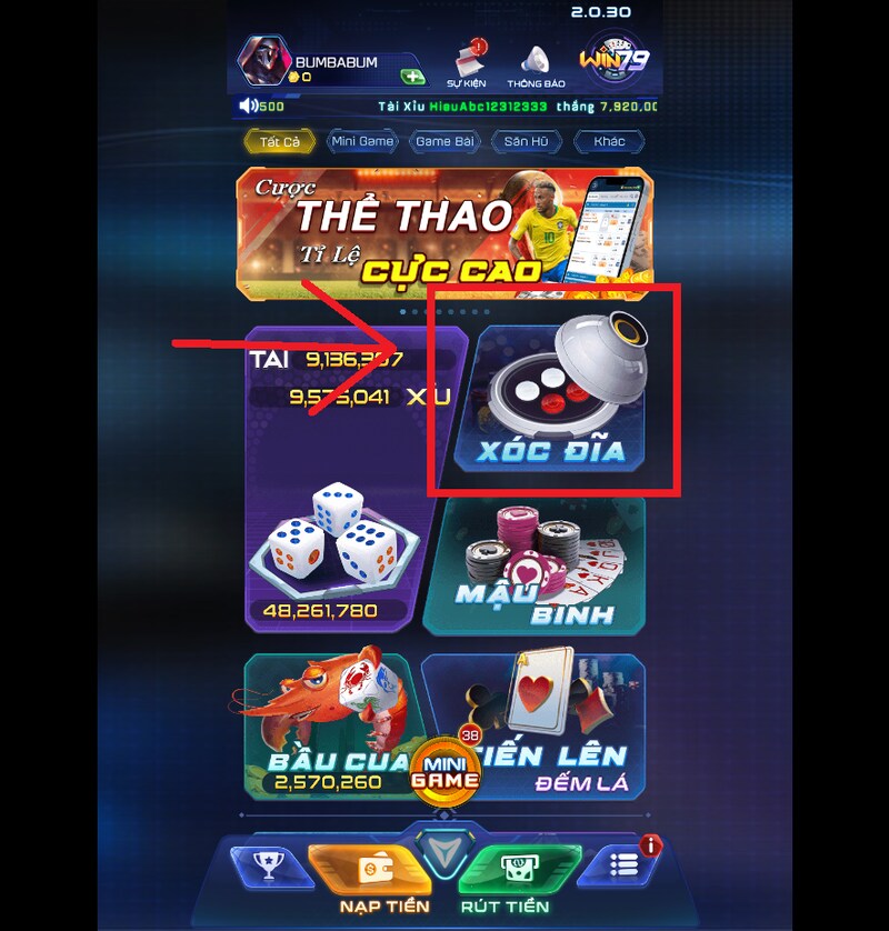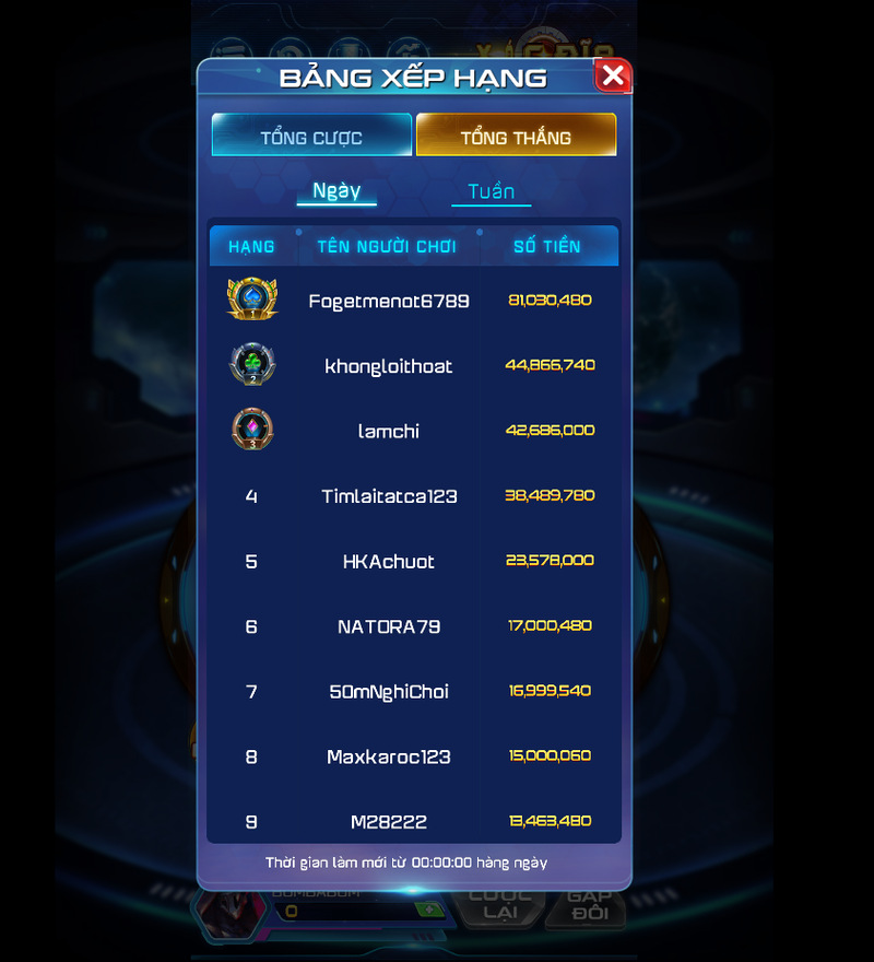Bảng xếp hạng tiền thắng của Xóc đĩa Win79